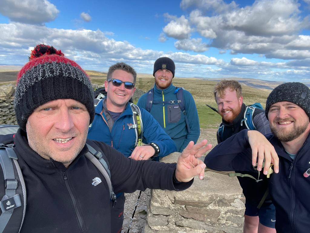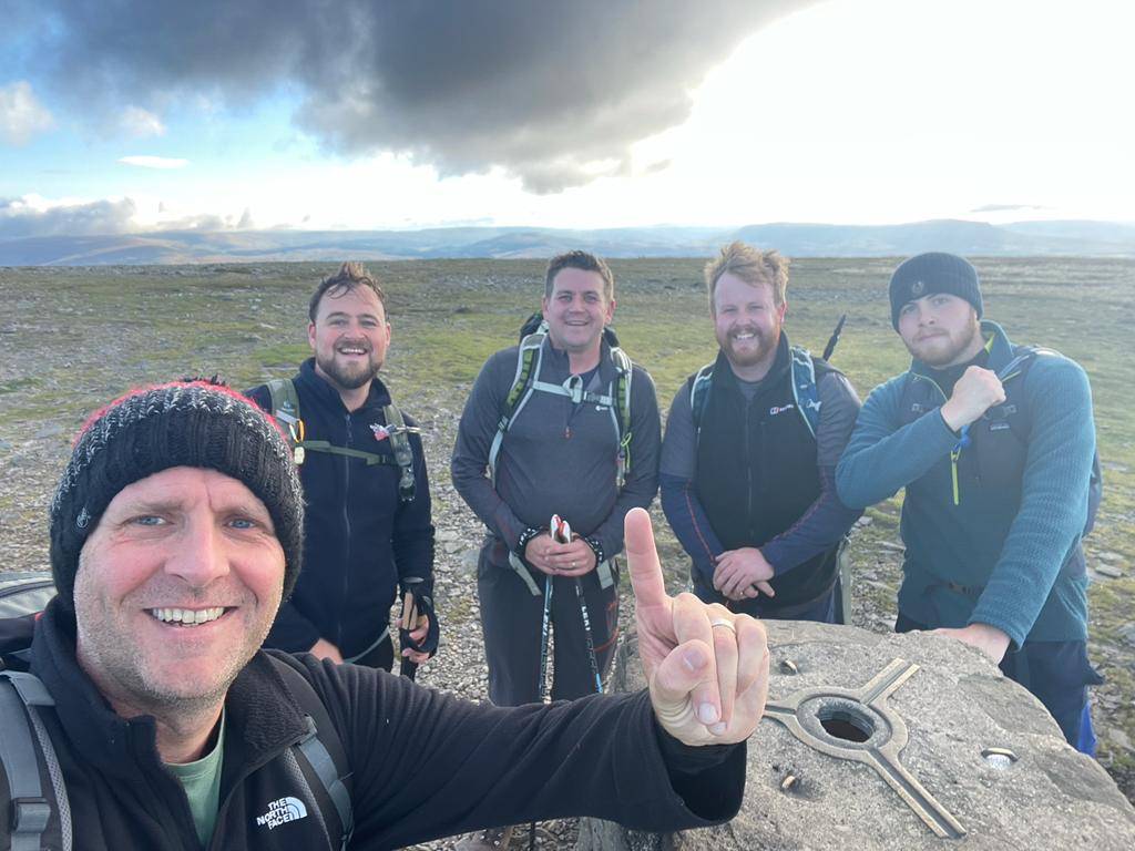 Starting out towards Ingleborough (2372ft), then onto Whernside (2415ft) and finishing on Pen-y-ghent (2277ft), allowed for a good pace to be set from the get-go.  The climbs became tougher as the day went on and morale remained high throughout the day. The views were spectacular from each trig point making our combined efforts worthwhile. An obligatory team picture at each one, then onto the next.